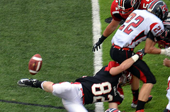 #82 Eric Rutledge causes the fumble